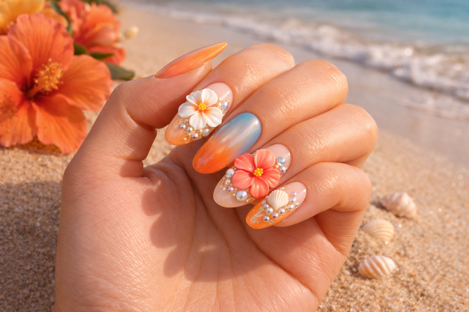3D tropical florals made for beach days, golden hours, and girls’ trips.